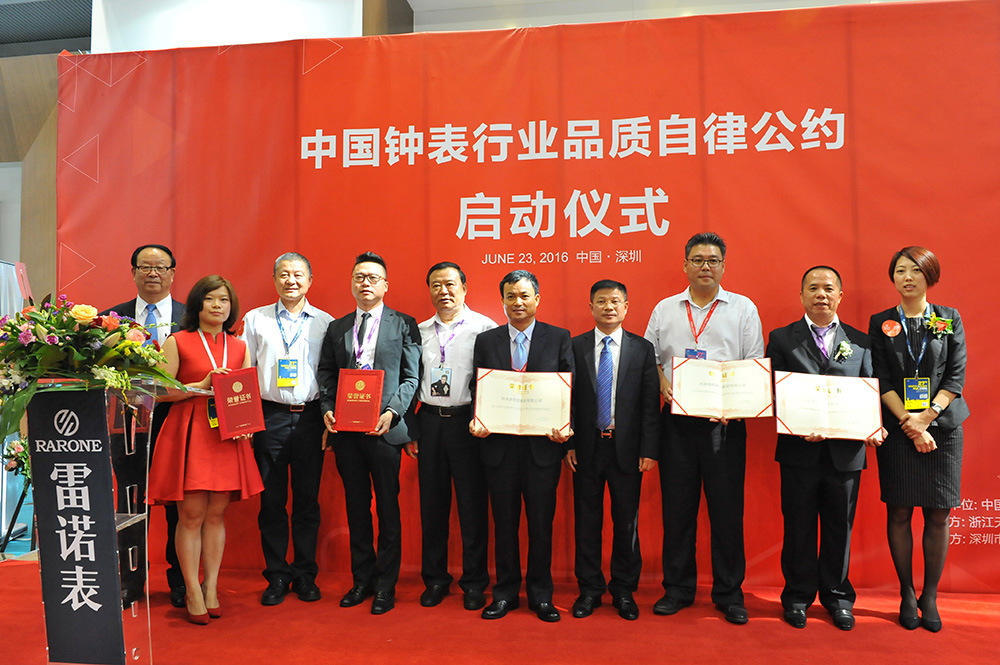 由天貓主辦、雷諾表承辦的《中國鐘表行業(yè)品質自律公約》啟動簽約儀式在雷諾表展館內(nèi)舉行,行業(yè)內(nèi)具有影響力的鐘表企業(yè)一同簽約,為促進中國鐘表行業(yè)質量做出努力和承諾。