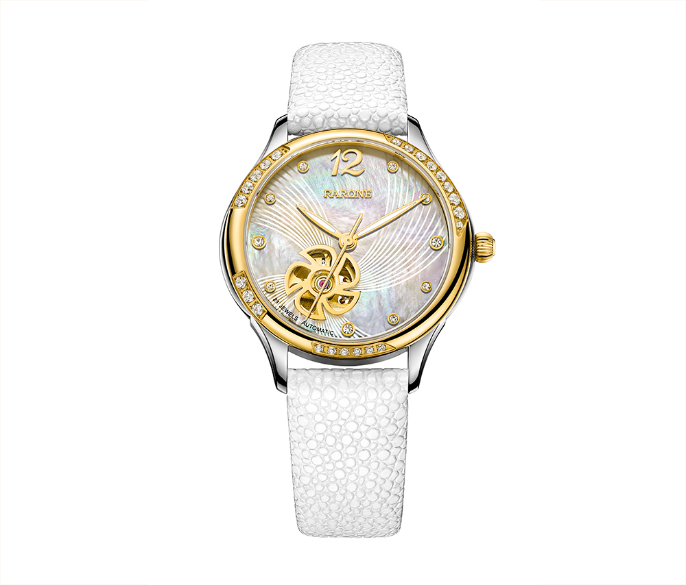 雷諾表在活動(dòng)中發(fā)布女表新成員——夜色·芳菲機(jī)械表。夜色系列是雷諾表最受矚目的女表系列之一,該款腕表的設(shè)計(jì)理念,靈感源于對時(shí)代女性力量和美麗贊美。以溫和的曲線,流暢的線條傳達(dá)對機(jī)械與美學(xué)的理解。機(jī)械機(jī)芯、水晶鉆石代表力量,珍珠貝母表盤、花朵元素代表美麗。鏤空小眼展現(xiàn)花朵的雀躍靈動(dòng),并在珍珠貝母面上拖曳出動(dòng)感的線條,再現(xiàn)女性的活力與優(yōu)雅。魔鬼魚皮表帶為時(shí)尚趨勢,整體風(fēng)格非常適合女性出席多種場合佩戴。